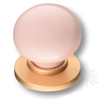 Ручка кнопка 3005-61-PINK, материал Замак Керамика, цвет Розовый, отделка Золото Керамика, 35*d=32/32 мм